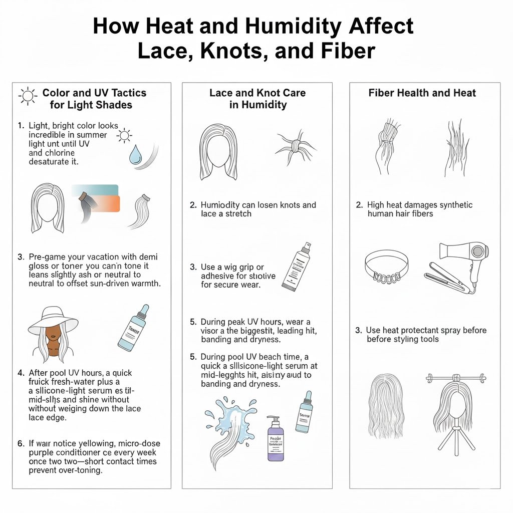 Summer success is consistency, not complexity. Build habits that protect the lace edge, maintain shine, and manage sweat efficiently.